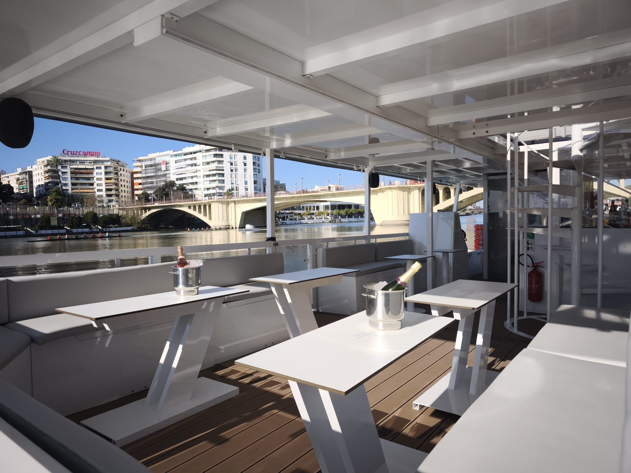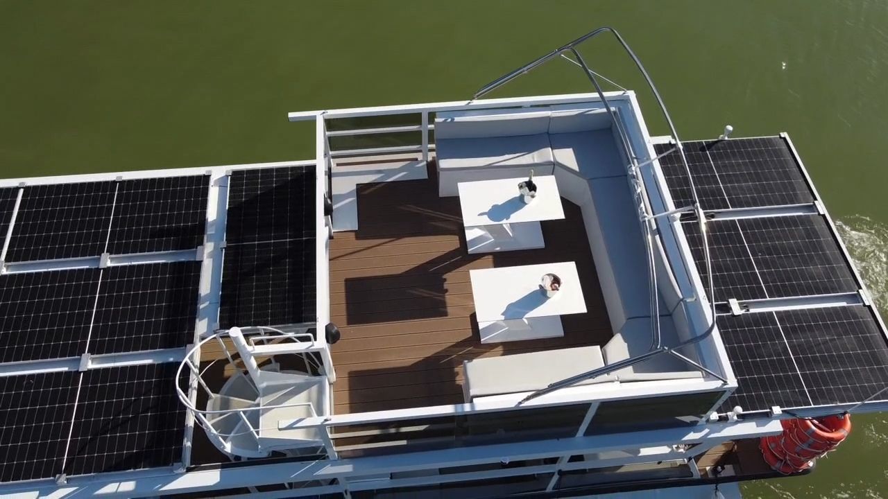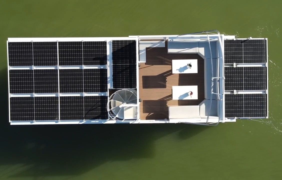 Large pontoon boat that offers unforgettable experiences for tourism, available with two levels, perfect for organizing corporate events, wine tastings, parties and water sports activities. Available in electric and gasoline versions.